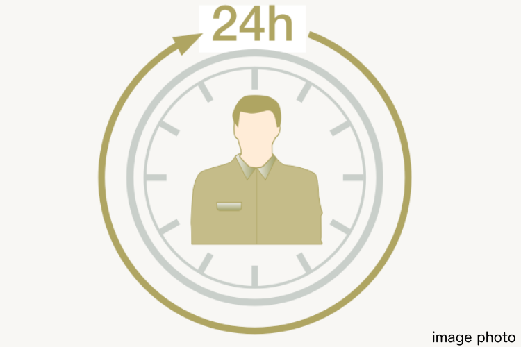 24時間の有人管理によって、防犯性・防災性が向上されています。日中は管理スタッフ、夜間は防犯センタースタッフにより建物内の巡回警備が行われています。