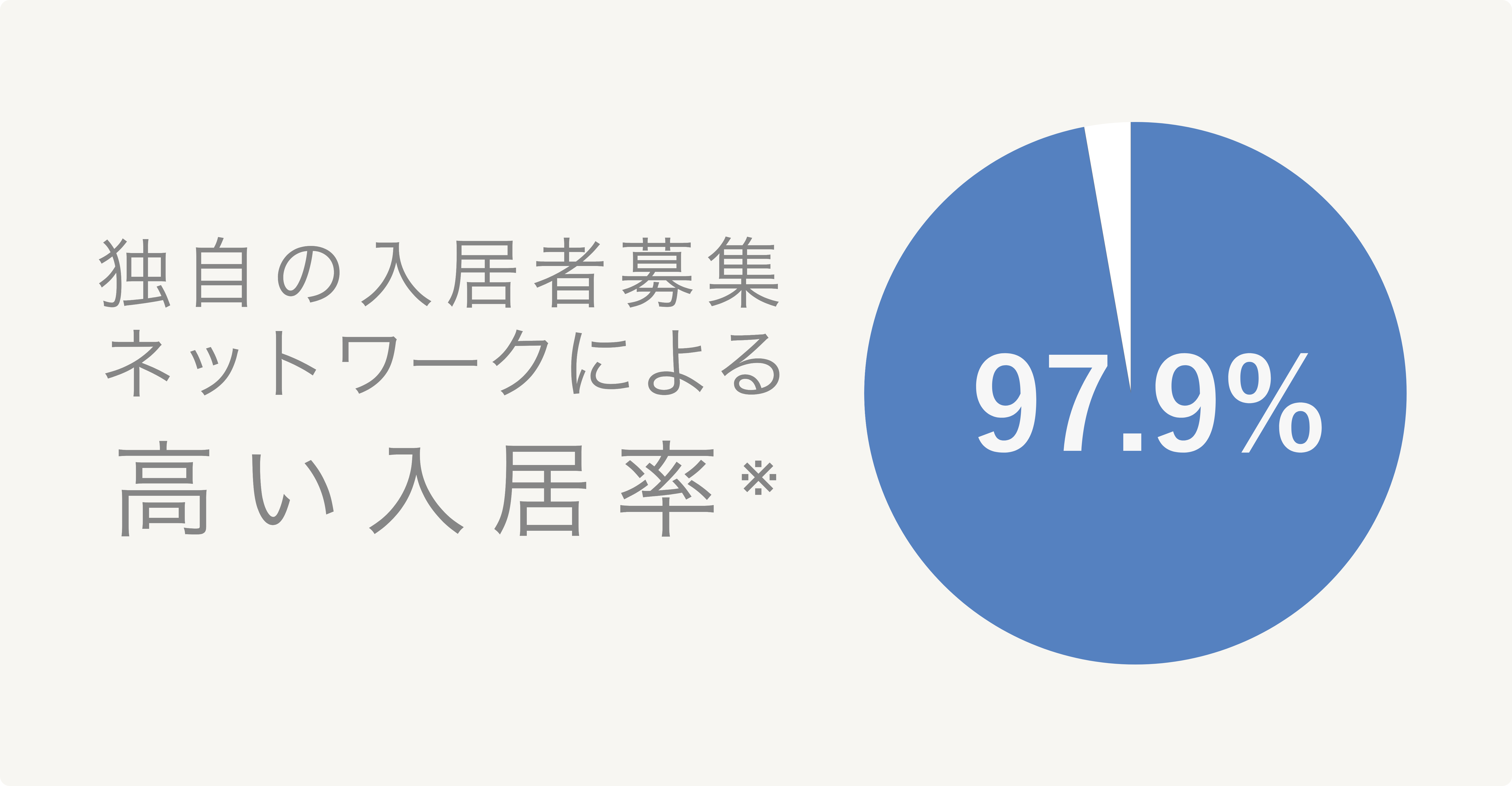 綿密な市場調査により高い商品価値を維持。賃貸ニーズの高いエリアに募集代理店を展開し、充実の入居者向けサービスで入居率97.9%を誇ります。