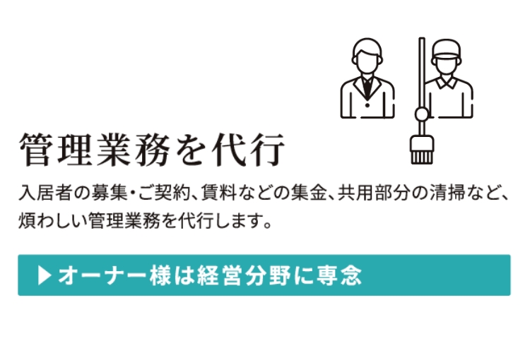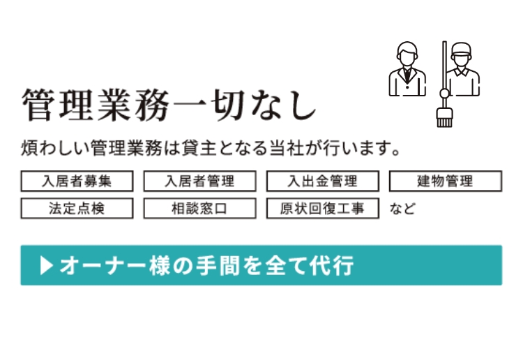 「入居者募集」「良好な住環境の維持管理」「入居者のトラブル対応」など、あらゆるサポートをフルパッケージにして提供されています。