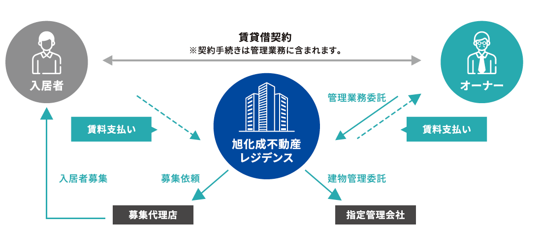 賃貸経営に関わる総合的な管理業務を旭化成不動産レジデンスが代行します。